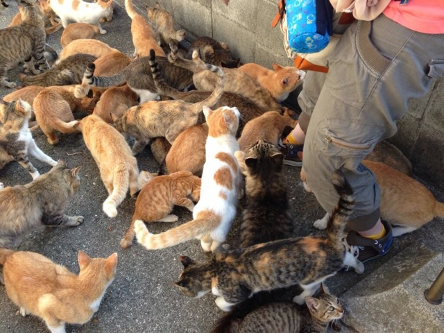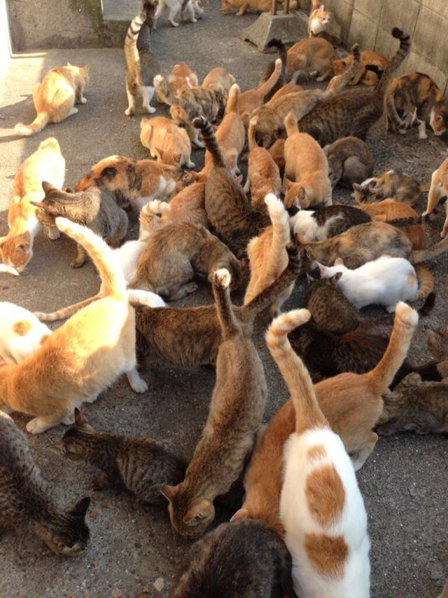 The cats were originally kept by the fishermen to eat mice. Today cats thrive on the island and outnumber the people. Dogs are prohibited on Tashirojima, and the locals feed the felines, believing they bring good luck. The island also houses a Shinto cat shrine. Vets check up on the cats, making sure they are healthy. And tourists visit the island just to see the cats.