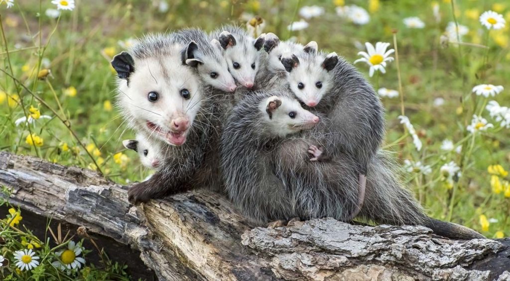 Like kangaroos (and possums), opossums are marsupials. After a short gestation period, they give birth to a litter of up to 20 tiny, hairless joeys. However, unlike kangaroos, opossums lack a fully developed pouch. The joeys instinctively crawl towards their mother’s belly, where only 12-13 will find a nipple and latch on for survival. Once developed enough, the joeys will climb onto their mother’s back, hitching a ride as she forages for food.