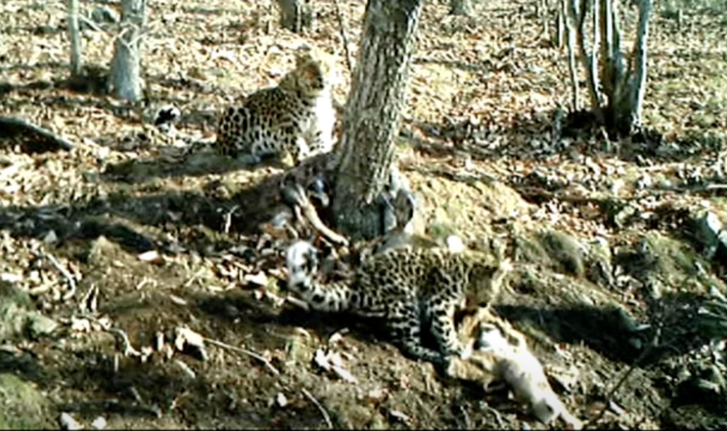 As part of a project called the “Spotted Family Russian Reality Show” the World Wildlife Fund and Land of the Leopard National Park in Vladivostok installed 10 game cameras near the remains of sika deer. The cameras filmed an Amur leopard feeding her young on the deer carcasses, providing wildlife researchers with valuable information on how the critically endangered animal raises its kittens in the wild and offers a glimpse of leopard family dynamics in the wild.